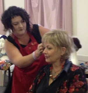 By the time we got to the wigs, I was feeling chirpy enough to agree to be the model. Sure, I might have staggered a little when I stood up, but motivation got me to the chair.